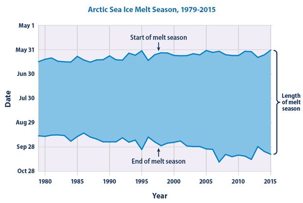 Grafer som visar hur den arktiska polarisens utbredning förändrats genom åren har ofta sin startpunkt just 1979. Det brukar motiveras med att det var då man började använda satelliter för dessa mätningar. Men det finns satellitdata ända från 1973, bland annat publicerade i FN:s första rapport om klimathotet 1990, IPCC 1990, s. 224 (mina kommentarer i rött):